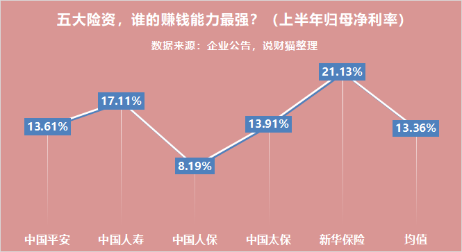 新华保险2025中报要问5家险资的赚钱能力如何,看看净利润率就知道了。