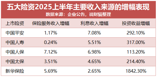 中国人寿2025中报此外,五家险资的利息收入增速在2%到7%。